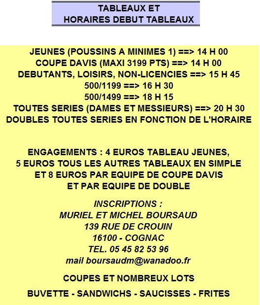 Le Club de Châteaubernard organise son Tournoi départemental le samedi 28 mai 2011 à partir de 14H (voir fichiers joints)